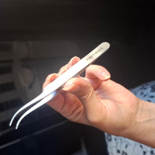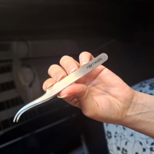 Precise application made easier with our applicator tweezers. Grip the lashes, apply glue, wait 20-30 seconds, and place them exactly where you want.