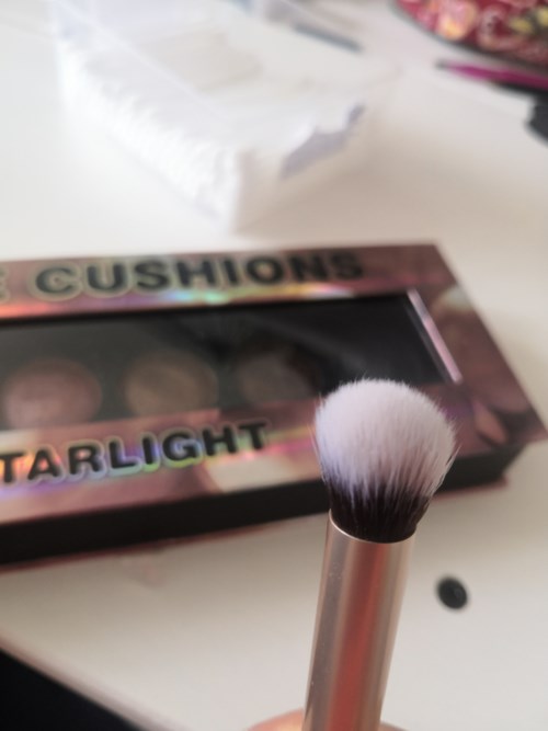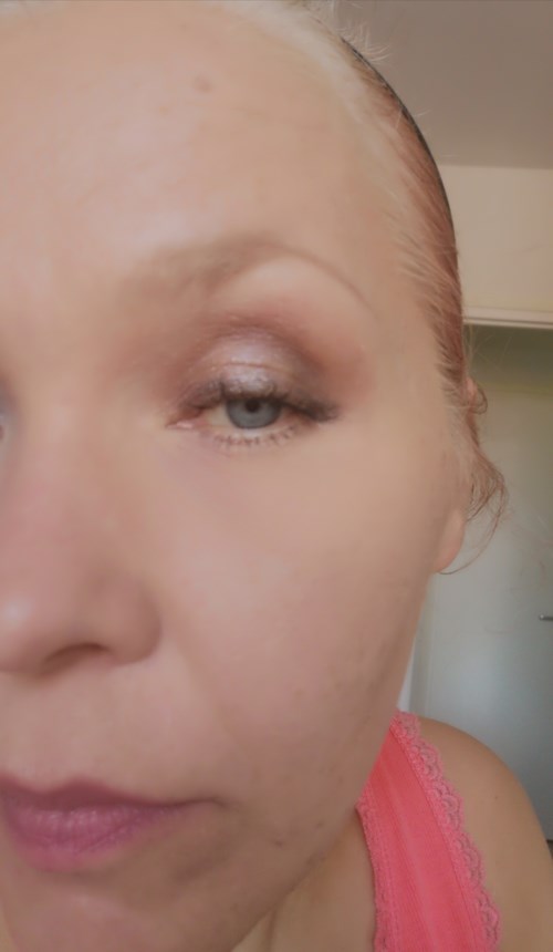 Ihanat sävyt iholla. Voidemaisuuden vuoksi häivytys piti tehdä paksummalla ja tiheällä siveltimellä. Voisin harkita ostavani tästä toisenkin värin paletin. Edullinen.1 product in post W7 starlight86 näyttöä