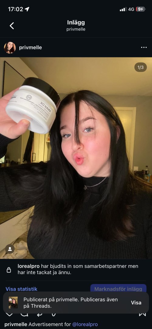 Deze post komt recht uit het hart. 😭✨ Ik moet eerlijk tegen jullie zijn: mijn haar voelt al zo lang dood en droog aan dat het mijn zelfvertrouwen daadwerkelijk heeft beïnvloed. Ik heb me zo down gevoeld over hoe mijn haar eruitzag en bijna de hoop opgegeven om het weer mooi te krijgen... totdat ik dit PR-pakket thuis ontving. Ik heb de Metal DX-masker getest en ik wilde bijna huilen van blijdschap toen ik het resultaat zag. Het voelt alsof mijn haar eindelijk weer tot leven is gekomen! Het is zacht, glanzend en voelt gezond aan op een manier die ik niet mogelijk achtte. Het heeft me niet alleen mooi haar gegeven, maar het heeft me ook mijn hoop teruggegeven. 💖 Als je het gevoel hebt dat je haar een totale reddingsactie nodig heeft – dit is het teken waar je op hebt gewacht! #sosmetaldetox #lorealpro @LorealPro Loreal Paris #metaldx #hårvård #självkänsla1 product in post Advertentie voor @LorealPro243 keer bekeken - De rol van de gebruiker: Lyko Creator.Het bericht is gemaakt 1 jaar geledenBeoordeling: 5 van de 5Geverifieerde tester