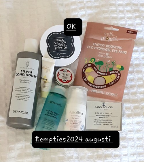 Hier zijn mijn #empties2024 voor augustus! Zoals gewoonlijk heb ik het meeste beoordeeld van wat er te koop is bij Lyko😊 🤩FAVORIETEN🌟🤩 Ik noem er een paar, de rest is te zien op de foto (en ik heb ze waarschijnlijk eerder genoemd)! 🌟SNP Peptaronic sheet mask met verschillende soorten peptiden en hyaluronzuren - superb voor droge huid! 🌟Shangpree Gold Black Pearl oogmasker moet wel het beste oogmasker in sheet mask-vorm zijn voor gezwollen ogen! En de duurste💸😫👋 🌟Korres gelmasker met komkommer vermindert ook goed zwelling en dat voor een veel mildere prijs🤱 🌟Pai Skincare Light Work Rosehip fruit extract cleansing oil is een luxe biologische echt goede, lichte reinigingsolie met rozenbottelzaadolie die goede anti-aging eigenschappen heeft🌸👋 Kreeg het in een doosje😋 Jammer alleen dat Pai niet meer in Zweden lijkt te worden verkocht😥 🌟Klairs diep hydraterende en behandelende gelcrème/maske met vitamine E en niacinamide is zo goed ook voor ons met een droge, iets gevoelige huid die misschien niet zo goed omgaat met pure niacinamide😊 Heel goed voor het geven van kleinere en schonere poriën en het verminderen van pigmentatie👩🎤🏳️🌈 🌟Dr. Ceuracle Cica Regen Vegan Sun spf 50 bevat onder andere niacinamide maar is een milde, niet-waterdichte zonnebrandcrème/gezichtscrème die mijn huid deze zomer heeft geliefd! Heel goed als je zweet zoals ik in je gezicht van de hitte, omdat het ook de huid matter maakt😋 🌟Comfort Zone Sun Soul Face cream - geweldige ongeparfumeerde zonnebrandcrème ZONDER niacinamide zodat ik het op mijn hals en decolleté kon gebruiken zonder problemen (waar niacinamide me eczeem geeft)😊 🌟Urtekram Body butter in de geur "Soft Wild Rose" uit de serie "Dare to dream" is een biologische dromerige bodycrème met een milde, zeer aangename rozenachtige geur. Heel fijn voor droge huid! 🌟Schmidt's biologische stickdeodorant in de variant Charcoal & Magnesium is waarschijnlijk de beste aluminiumvrije deodorant voor ons die veel zweten😻 Milde, neutrale geur👃🏽🏳️🌈 🌟Eco Cosmetics Lip Care - beste biologische cerat🌸 voor droge lippen! Bevat onder andere bijenwas, cacaoboter, sheaboter, groene thee en vitamine E. Zwakke honinggeur🌍😊 🤔OK MAAR KOOP WAARSCHIJNLIJK NIET WEER🤔 🤔Dermosils silverbalsam. Mild van het Finse, allergievriendelijke Dermosil, maar ik vond de shampoo en de verpakking beter! 🤔Apolosophys oogmake-up remover - mild en ok als je geen waterproof make-up draagt😋 🤔Apoliva Sensitive serum - is als een lichte dagcrème met niacinamide. Was opgenomen in hun adventskalender 2023, die zeer betaalbaar was🤱 🤔Purederm Black Solution oogmaskers zijn meestal een goed budgetalternatief🤱 voor de super dure💸 van Shangpree, maar deze gingen in dec-23 uit en waren daarom sterk afgeprijsd. Helaas waren meer dan de helft half gedroogd en niet meer effectief (LET OP! Niet gekocht bij Lyko). Juist voor mij😄 🤔Bondi Sands "Sunny Daze SPF 50" was te donker en droog voor mij, maar fijn op hals en decolleté! 🤔Zoya goes pretty "Rosehip Face balm" is een heerlijke, vette biologische, veganistische gezichtscrème met rozenbottelzaadolie. Normaal hou ik ervan, maar deze batch rook ongewoon veel naar mest😤😳🏳️🌈😅 wat ongeraffineerde sheaboter kan doen😢 🤔Selfie Project Energy Boosting Eco hydrogel oogpads waren fijn, maar niet meer. 🤔Sans Soucis Beauty Elixir 10% Niacinamide serum - monster dat voor enkele gr. volstond. Helemaal ok voor het gezicht. 🚫NEE - NIET VOOR MIJ🚫 🚫Ida Warg "Intense Nutrition hand cream" gaf NUL voeding, maar veroorzaakte migraine en astma door de geur voor mijn man en mij. Bedankt nogmaals aan Malin/Malinadenfina die #empties en #projectpan hier op Lyko social een paar jaar geleden begon, zodat we schoonheidshoarders worden aangemoedigd om te gebruiken wat we al hebben voordat we nieuw kopen. Het lukt soms😉 #empties2024 augustus7166 keer bekeken- Reactie geladen 1 jaar geledenAha ja, er altijd wel iets dat moeilijk doet 😂 Ik heb deze keer niet zoveel voor een empties, denk ik, ik ga het even bekijken, maar ik denk dat ik moet hopen op meer dan een maand😅 maar met project pan ben ik echt ver gekomen😊👍1 likes