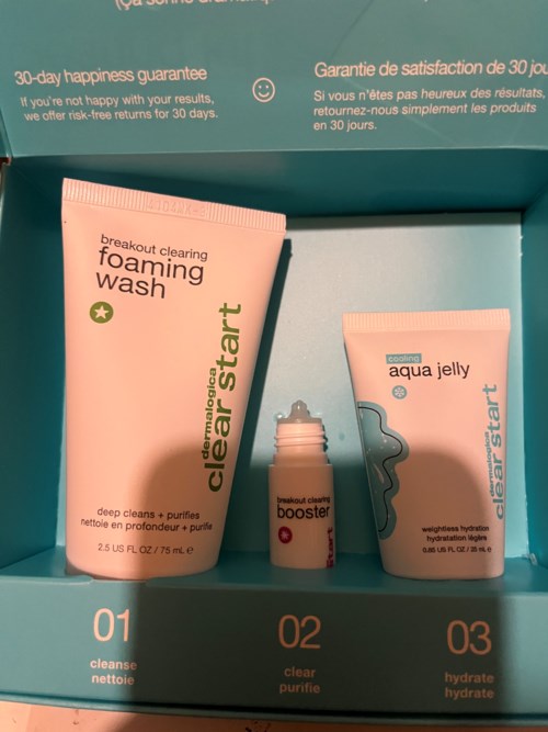 - Breakout Clearing Booster (10 ml): Een snelwerkende, lichtgewicht treatment die de poriën zuivert en onzuiverheden vermindert.