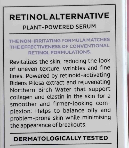 Dit baanbrekende serum versterkt met een alternatief complex van 4% plantaardig retinol pakt tekenen van veroudering aan en is net zo effectief als synthetisch retinol, maar zonder dat het irritatie en droogheid veroorzaakt.