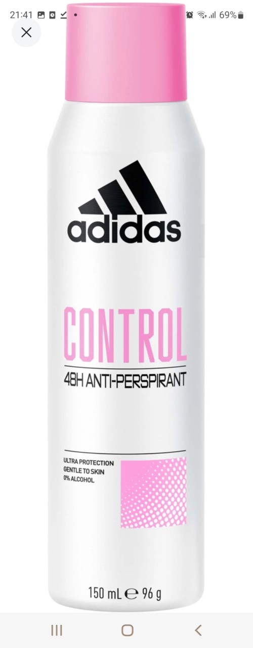 Adidas Control Anti-perspirant Spray beskytter effektivt mot svette og kroppslukt i 48 timer, samtidig som den er skånsom mot huden. Den fruktige blomsterduften åpner med saftige toppnoter som glir over i et hjerte av blomster og avrundes vakkert med hvit musk. Produktet er dermatologisk testet, vegansk og inneholder ingen alkohol.