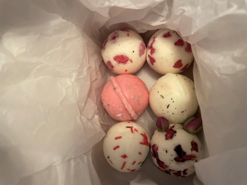 Alle badebomber fra Bomb Cosmetics er trykket, rullet, dyppet og dekorerte for hånd.