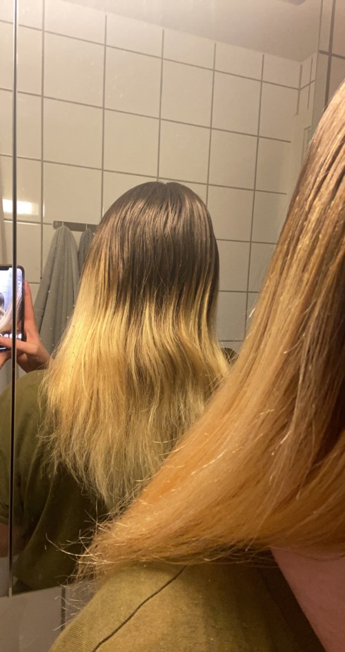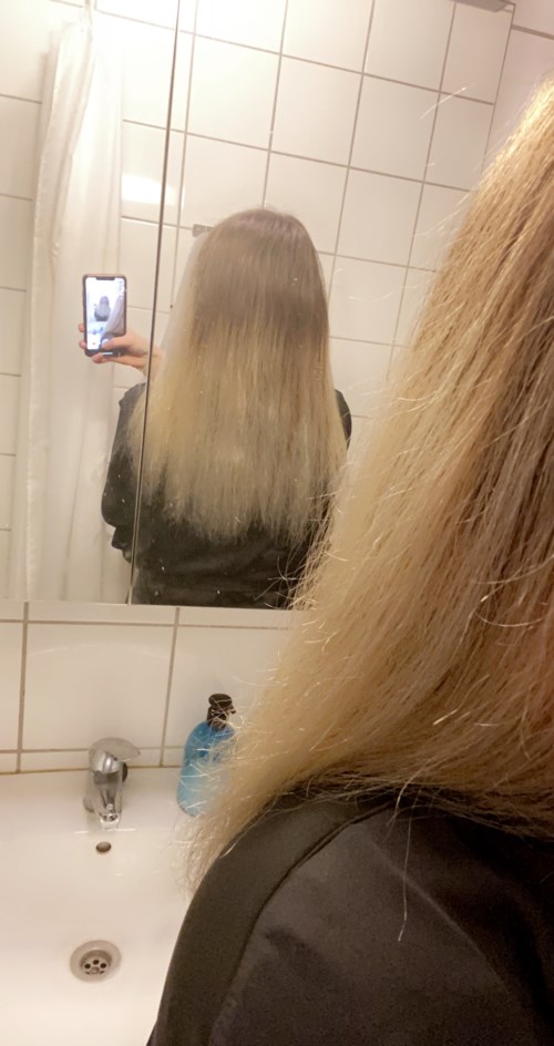 Første bilde er mitt utgangspunkt. Tok Bayalage for rundt et år siden, hvor jeg syntes at mitt blonde hår hadde blitt for varmt og for gult. Hadde denne hårtoneren liggende og tenkte at den ville gjøre dette noe kaldere. Det kommer kanskje ikke tydelig fram på bildet, men jeg har fått noen grå/sølv toner spesielt i tupper. Ikke helt det jeg var ute etter, men kan ikke klandre kvaliteten på hårtoneren av den grunn. Håret er nok mye mer beige med en kald tone, fremfor askeblondt. Sånn sett vil jeg si at jeg har fått en ganske fin overgang med mitt naturlige og den kalde tonen. Vil si at håret ser mye finere ut i virkeligheten enn det som vises. Skadet ikke håret, men pass på å skylle ordentlig ut da jeg opplevde toneren noe seig for håret. Alt i alt er jeg fornøyd med produktet, men ikke hundre prosent fornøyd med resultatet.1 produkt i posten God toner.2368 visninger - Innlegget ble opprettet 5 årVurdering: 4 av 5Verifisert kjøper