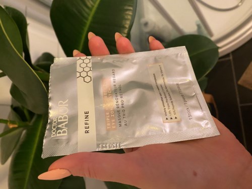 Jeg har vært så heldig å få teste produkter fra Babor, først vil jeg fortelle litt om meg og min hud: Alder: 28 år Hudtype: Normal- tørr hud Urenheter: Lite urenheter Noen linjer i panne Det kan være greit å bemerke seg at jeg kun har prøvd denne øyemasken èn gang. Jeg har ikke spesielt synlige poser under øynene eller fargeforskjell. Jeg har personlig ikke merket noe spesielt forskjell etter bruk av denne masken èn gang. Men har tro på at den kan ha effekt hvis man bruker den jevnlig. Anbefalt bruk er 1 gang i uken.✨ Maske inneholder octapeptider som er kjent for å gi en botox lignende effekt, og jevner ut huden når masken brukes regelmessig. Den inneholder også retunulpalmatat, en ingrediens som støtter synergi av kollagen. Kollagen hjelper med fasthet og en mer elastisk hud. Masken skal også hjelpe mot aldring og med å fornye huden.🙌🏻 Ved bruk av denne masken merket jeg litt prikkinger i huden, noe som fysisk viser meg at noe skjer. Det føles som at masken gjør noe med huden. Så hvis man bruker masken jevnlig har jeg tro på at den vil gi huden det den sier; mindre aldrings tegn, mer elastisk hud, bygger opp huden og jevner hudtonen. Jeg syns masken i formen er bra, den er stor og dekker de områdene man ønsker- under øynene, over nese ryggen og litt nedover kinnene. Masken var litt vanskelig og få lagt godt inn på nesevingene. Men dette varierer nok i forhold til form på nesen man har!😅 Alt i alt er jeg fornøyd med å kunne teste masken, men i og med at jeg ikke har prøvd den jevnlig over tid syns jeg det er vanskelig å si noe på resultater av bruk. Det virker som sagt fysisk på huden ved bruk at det er noe som skjer. 🙌🏻 #LYKOINFLUTESTER #BABOR1089 visninger - Brukerens rolle: Lyko Creator.Innlegget ble opprettet 2 årVurdering: 5 av 5Verifierad testare
