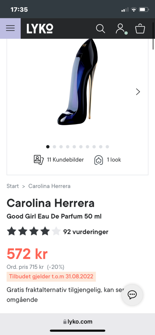 Carolina Herrera Good Girl er en duft som selv på varme sommerdager kan fortrylle med sin sensualitet og eleganse, dette er ikke lette parfymer, de passer for kvinnen som om sommeren ikke gir avkall på karakter og ønsker å vise sitt klør. Det er min favorittduft, det kan sees, siden dette allerede er min andre flaske [hashtag] [hashtag] [hashtag] [hashtag]1 produkt i posten Carolina Herrera Good Girl564 visninger - Innlegget ble opprettet 3 årJeg har nettopp kjøpt denne på lyko! Jeg må bare si beste parfymen Alstå😍🥰 får komplimenter av både jenter og gutter! Passer til alle aldere over 15😍 voksen men søt og fin lukt! Denne anbefales for alle som ser etter en ny parfyme! På toppen av det hele er flasken kjempe fin og søt! Helt til 31.08 er det slag på denne her på lyko så jeg sier bare løp og kjøp🥰😍#konkurranse #parfyme #goodgirl135 visninger
