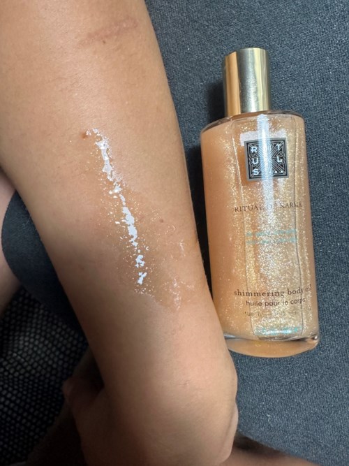 Denne shimmer oljen er virkelig et fint tillegg til solbrun hud. Du får er slør av glød og fuktighet som virkelig ser flott ut. Lukter godt itillegg. Jeg synes det kommer passe menge olje og glitter når du heller ut, slik at du selv kan bygge opp hvor mye shimmer du ønsker. Oljen trekker relativt fort inn i huden og etterlater huden virkelig flott. Har brukt slike oljer før, men da en tørr olje som jeg gjerne blandet med en loation samtidig, det blir ikke like flott resultat som denne. Glass flasken er tung, har et eksklusivt design og ser flott ut på badehyllen. Liker du slike shimmer produkter, kan denne anbefales. #LYKOINFLUTESTER #RITUALS #KARMA1 produkt i posten Lekker1179 visninger - Brukerens rolle: Lyko Creator.Innlegget ble opprettet 2 årVurdering: 3 av 5Verifierad testare