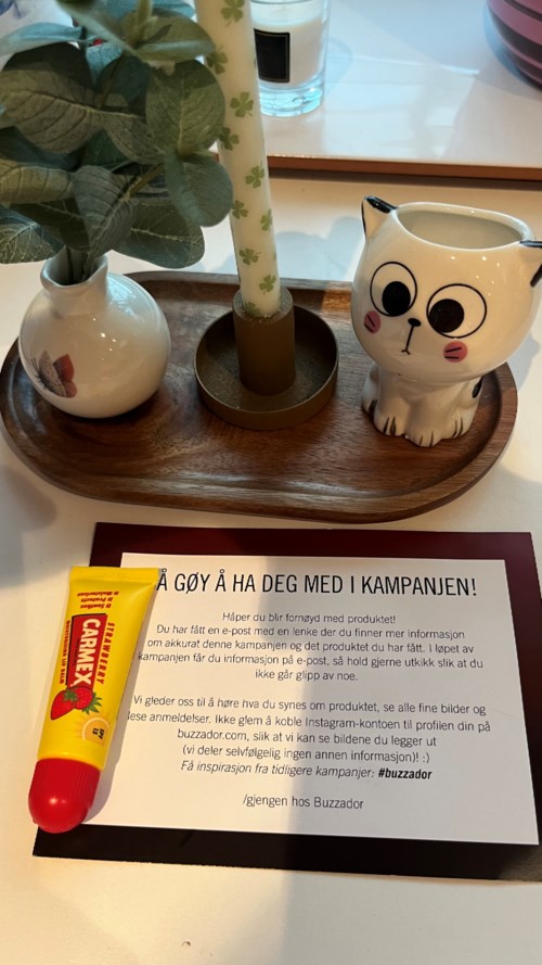 I samarbeid med @carmexnordic og Buzzador har jeg testet denne deilige leppepomaden. Har kjøpt vanlig Carmex flere ganger før og vært fornøyd med den. Denne kommer i tillegg med en god jordbærlukt og solfaktor 15. kjøper gjerne igjen. #Levelupyourlips #Carmex #CarmexNordic #Carmexbuzz25 #buzzador1 produkt i posten Fornøyd251 visninger - Innlegget ble opprettet 2 måneder