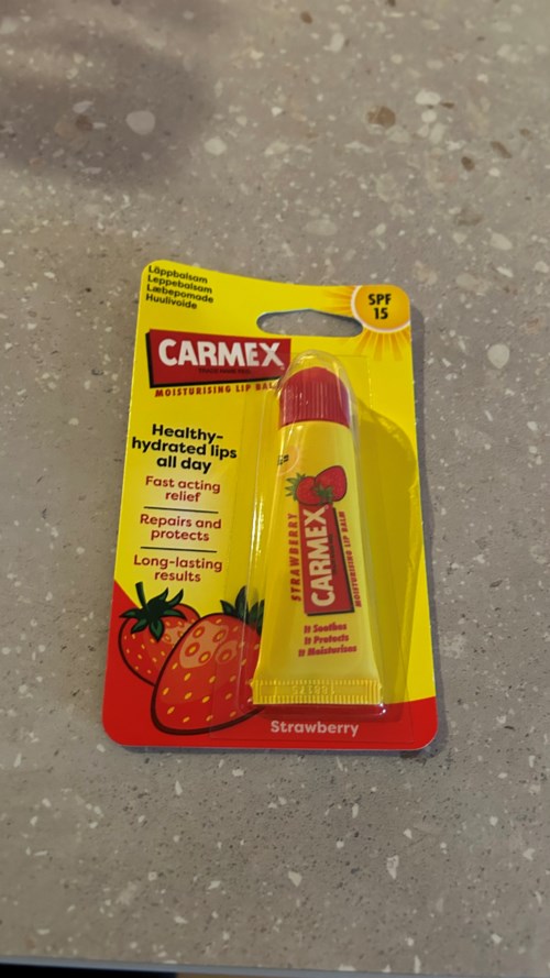 Carmex leppepomade har SPF15 beskyttelse, så jeg tar denne med på min neste solferie. Carmex inneholder mentol, den første følelsen er en kjølende friskhet når man påfører leppepomaden. Deretter merker man den lette søte smaken og duften av jordbær. Det er ikke dyrt, #levelupyourlips #carmex #carmexnordic #carmexbuzz25 #buzzador. I samarbeid med @carmexnordic.1 produkt i posten Fresk følelse og deilig smak250 visninger - Brukerens rolle: Lyko Creator.Innlegget ble opprettet 2 månederVurdering: 3 av 5