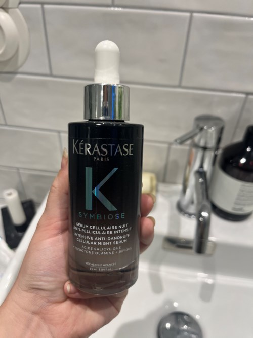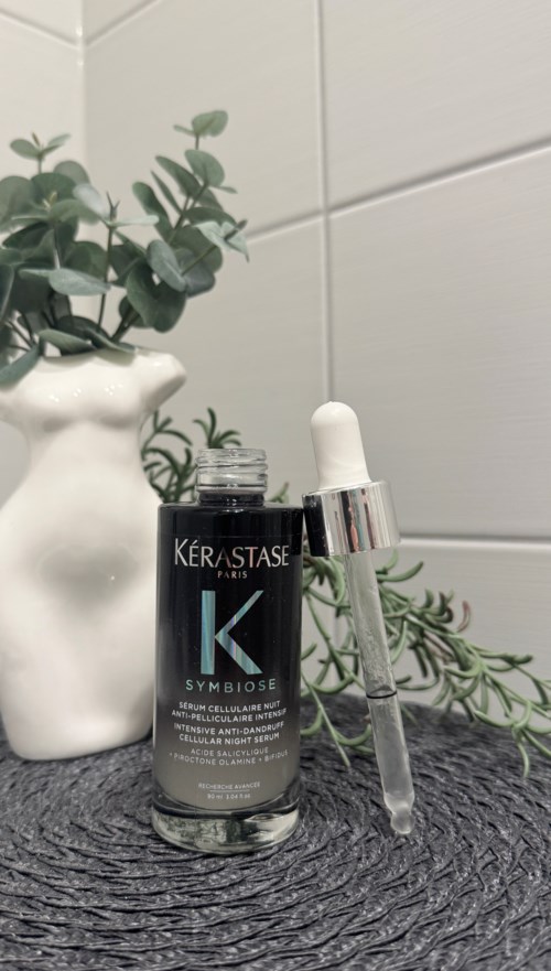 Symbiose: Cellular Anti-Dandruff Haircare er et nattserum som skal motvirke flass og ha en langvarig effekt. Serumet skal kunne brukes mot alle typer flass og for sensitiv hodebunn. Det skal lindre irritasjoner og ubehag i hodebunnen og hodebunnen skal bli mindre følsom. I tillegg skal hodebunnen føles sunnere og sterkere. Serumet skal være ikke- klissete og ikke-oljete Serumet skal brukes ved at det Påføres på håndkletørket hodebunn. Man fyller en pipette opp til merket og påfører 3 doser, seksjon for seksjon. Deretter masseres det forsiktig inn. Produktet skal ikke skylles ut. Siden eg ikkje har noen spesielle utfordringer med hodebunnen fikk eg ikkje testet dette serumet optimalt. Prøver likevel å anmelde så godt eg kan. Serumet har en eksklusiv innpakning i tung flassflaske og lukter friskt og godt - litt citrus aktig. Unisex lukt. Ved påføring synes eg pipetten drypper en del noe som trekker en del ned da det er et dyrt produkt man ikkje vil la gå til spille. Konsistensen på serumet er rennende og ikkje klissete. Lett å påføre. Praktisk med markering på pipetten. Virkningen av serumet kan eg desverre ikkje si så mye om. Den har ingen negative effekter på min normale hodebunn iallfall. Gir den fire stjerner på litt tynt grunnlag. #kerastase #lykotestpilot1 produkt i posten Frisk og god duft98 visninger- Brukerens rolle: Lyko Creator.Kommentaren lades 1 dagHaha - det sksl ikkje stå «flassflaske» men glassflaske…. Selv om det var litt passende.1 liker