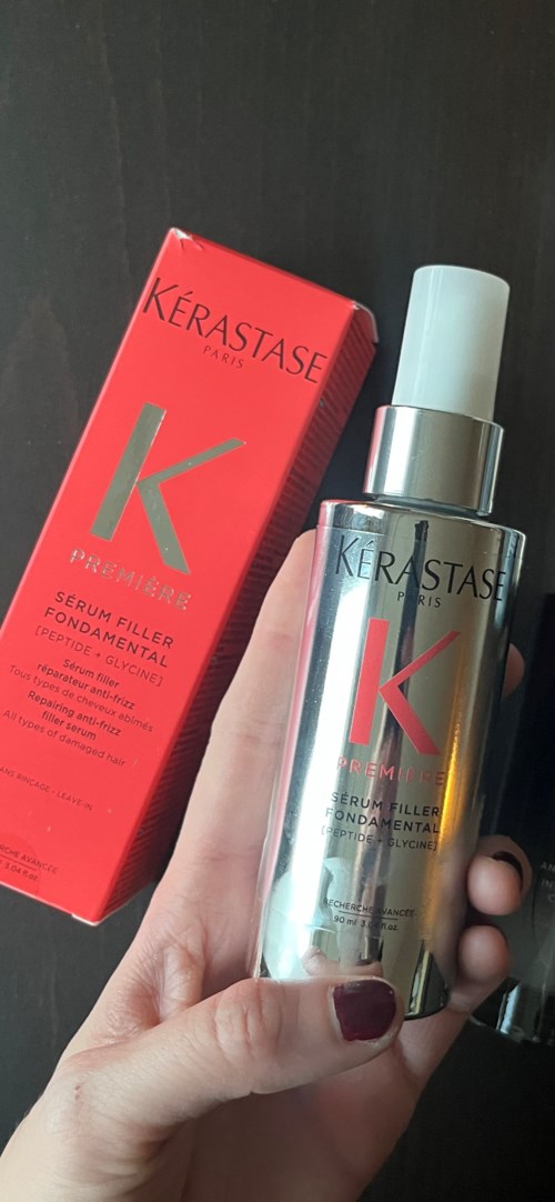 Première Sérum Filler Fondamental Hair Serum 90 ml Sérum Filler Réparateur by Kérastase er et reparerende leave-in hårserum som skal motvirker knekte hårstrå. Det skal også hindre krus beskytte mot varmen fra stylingverktøy, Det er en lett leave-in-behandling som skal reparere alle typer skadet hår innenfra, slik at håret blir glansfullt og smidig:. Produktet skal påføres i håndkletørket hår. La sitte i. Deretter kan man føne håret og forme med varmestyling. Produktet er lett å påføre og drøyt i bruk. Pipetten fungerer bra. Det lukter veldig godt (litt sånn salong følelse)- unisex duft. Håret blir ikkje fettete ved bruk. Den forskjellen eg først og fremst merket ved bruk av produktet (nå på vinterstid) var at eg fikk veldig statisk hår. Dette synes eg er fryktelig slitsomt så var ikkje fornøyd med det. Noen positive effekter kunne eg ikkje merke. Men eg har heller ikkje brukt produktet mer enn tre uker noe som muligens er litt for kort tid. Fortsetter å bruke produktet litt til og oppdaterer anmeldelsen om en stund. #kerastase #lykotestpilot1 produkt i posten Ingen merkbar effekt89 visninger - Brukerens rolle: Lyko Creator.Innlegget ble opprettet 1 dagVurdering: 4 av 5
