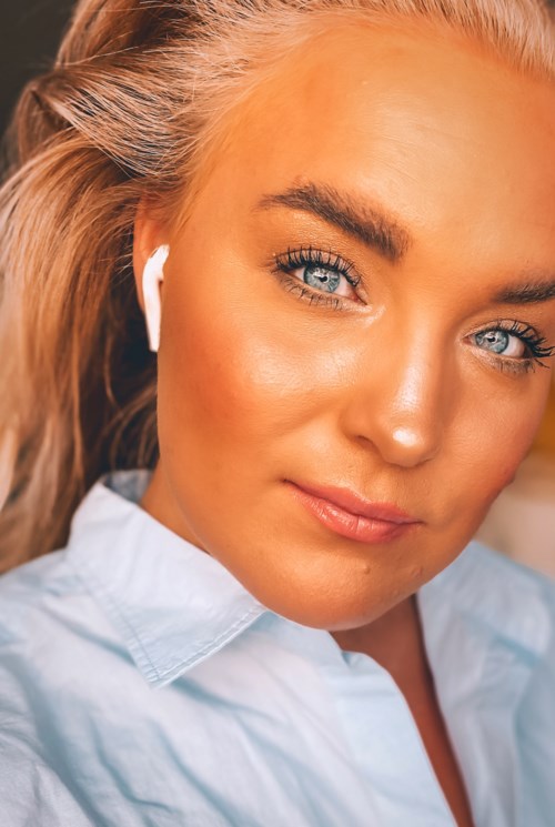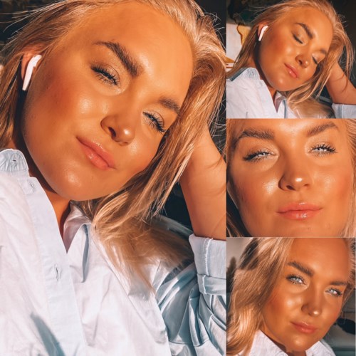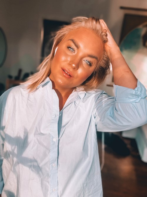 Ja men vad gör man inte en söndag när orken inte finns att hitta på något? Joo men varför inte testa på ännu en look med The Riviera Box! För ni har väl inte tröttnat på all magi denna skapar va? Jag är som sagt helt förälskad i denna och det finns så mycket att göra med den! I denna look blev jag inspirerad av skaparen själv, alltså Nathalie Berzelius i en look hon hade gjort på Marie Serneholt på sin instagram. Där jobbar hon glow, glow, glow och har även highlightern som ögonskugga! Och som pricken över i:et så lyckades jag timea in ”the golden hour” precis när jag var klar så det blev så det fantastiska ljuset på bilderna fick jag på köpet! Som jag skrev i min recension så är denna highlighter något utöver det vanliga, den är så fin och den fångar verkligen upp ljuset! Denna look är nog tametusan min favorit av alla jag har gjort med hennes box! Håret lät jag bara hänga fritt efter att ha plattat igenom det, mitt naturliga fall (jag är egentligen skruvlockig) gör att håret blir lite hur som helst när jag plattat det! Men det gav en relaxad känsla tillsammans med en oversized skjorta! Såhär vill jag se ut i sommar när jag dricker sangria på våran altan och grillar! #nathalieberzelius #lykoinflutester #nathalieberzeliusstockholm