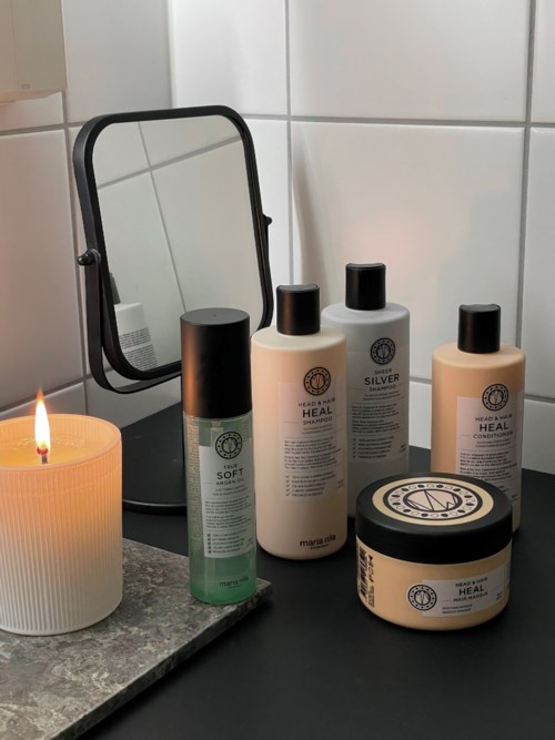 - Brukerens rolle: Tidligere ansatt.Innlegget ble opprettet 3 årHair routine w/ Maria Nila 💇🏼♀️🤍 Mitt hår trenger sårt fukt og beskyttelse da jeg jevnlig bruker varmeverktøy og farger håret. Jeg har funnet 5 produkter som har vært redningen for mitt hår. 1. Heal Hair Masque - Skyller håret og tørker det lett med ett håndkle. Påfører masken fra rot til spiss. Denne lar jeg virke i 1-2 timer for best resultat. Lukter fantastisk✨ 2.Heal Shampoo - Skyller ut masken og vasker håret med denne sjampoen. 3. Silver Shampoo - Vasker så håret med denne lillasjampoen for å fjerne alt av gulskjær. Lar denne virke i 2-3 min✖️🟡 4. Heal Conditoner - Påfører balsam kun i tuppene og lar det virke i 3 min før jeg skyller ut. 5. Soft Argan Oil - Når håret er håndkletørt påfører jeg denne deilige oljen på de mest slitte partiene. Lukter sinnsykt godt og gjør håret silkemykt og shinny uten at det blir fett i bunn💁🏼♀️ #NORGE22