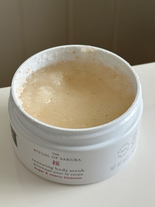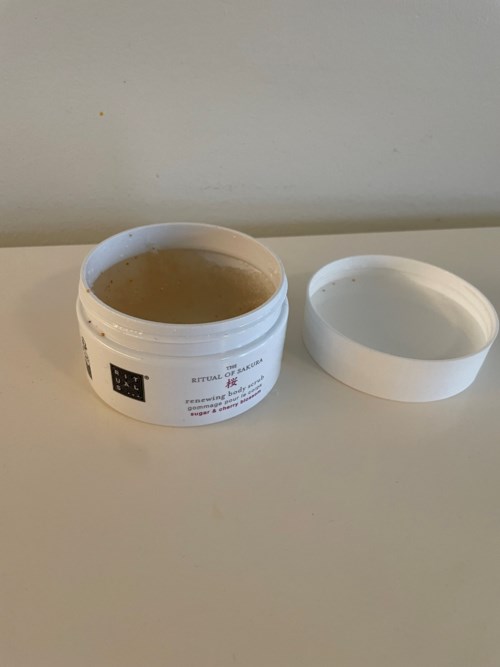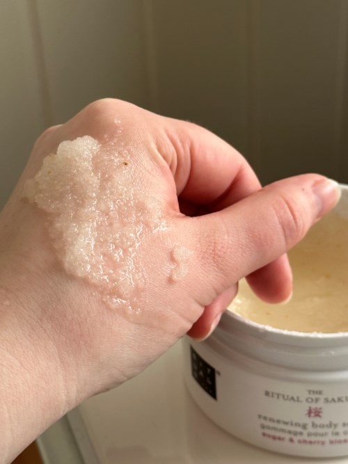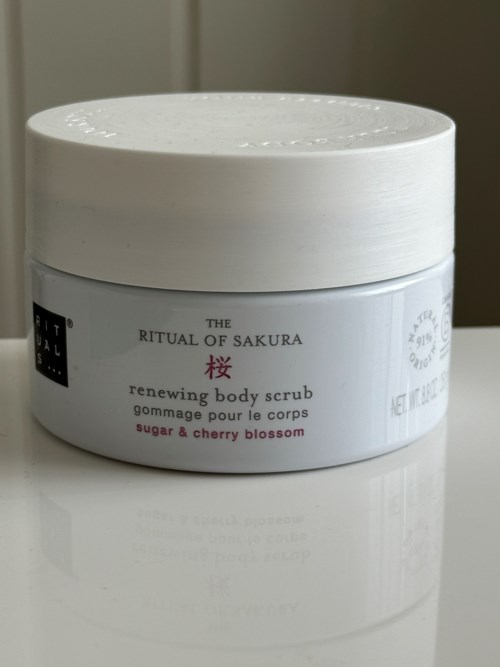 Jeg har testet Rituals sin The Ritual of Sakura sugar body scrub, sugar and cherry blossom. Da jeg åpnet boksen hadde produktet skilt seg noe, men det er bare å blande sammen igjen. Jeg likte denne skrubben godt. Den er nok ikke for noen med veldig sart hud, da den er ganske grov i konsistensen, men den gjør til gjengjeld virkelig jobben sin. Sukkeret eksfolierer effektivt alt av døde hudceller og sammen med oljene så etterlates huden fresh og myk og klar for bodylotion. Den har endel duft som man bør være obs på hvis man er sensitiv for parfyme, men jeg som ikke er det, elsker virkelig denne duftserien. Badet fylles av en luksuriøs atmosfære og duften sitter lenge på huden. Produktet kommer i boks med god størrelse og er drøy i bruk. Den ser luksuriøs og elegant ut og tar seg godt ut på badet. Den får bittelitt trekk fra meg for grovheten, men jeg kan fint bruke denne. Alt i alt en bra skrubb. #lykoinflutester #sakura #rituals1 produkt i posten Bra skrubb1703 visninger - Innlegget ble opprettet 1 årVurdering: 5 av 5Verifierad testare