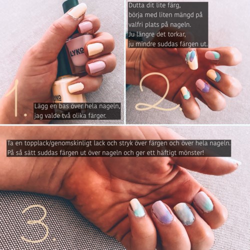 Här kommer den utlovade nagellooken från igår! Den blev som sagt förstörd innan jag hann fota den, så jag gjorde om den helt enkelt! Tycker naglarna blev så fina, våriga och coola! Jag vill innan jag går igenom min tutorial säga att jag är verkligen inte duktig på naglar, utan brukar testa och leka mest! Så jag ber om ursäkt till alla er nagel-gudinnor här inne som är helt fantastiska på naglar! Jag brukar mest gå på känsla, som med allt annat 😅 Här skriver jag steg för steg, på bilden har jag endast delat upp det i tre delar 🥰 1. Lägg ett skyddande baslack. 2. Lägg en basfärg över hela nageln, jag använde mig av två färger för att få lite mer variation. För att täcka hela nageln ordentligt fick jag med dessa färger lägga tre tunna lager lack. Detta gjorde jag innan jag la mig igår så att det verkligen torkade. 3. Se till att basfärgen verkligen har torkat 😂 4. Klutta på valfri färg på valfri plats på nageln. Jag la alla färger ner mot nagelbandet. Vissa färger tog jag större mängd av och vissa endast lite. OBS! Det kan torka fort, och ju torrare det är desto mindre suddas ut! Så för att vara på säkra sidan kan det vara bra att ta en nagel åt gången! 5. Ta ett genomskinligt lack eller topplack och måla över, jag målar från botten upp till toppen i racka streck för att endast få färgen utsuddad. 6. Låt torka. 7. Ev om du vill ha ytterligare ett lager, så gör om steg 4-6! Tada! På bilderna ser det lite ojämnt & buckligt ut men det är helt jämnt på nageln och det ser inte ut så i verkligheten utan det glänser väldigt mycket. Hade varit lättare att lägga ut en kort filmsnutt för att visa mer ordentligt! Hoppas ni fick lite inspiration 😘🥰 #vår2021 #makeupstore3 produkter i looken Pastellbonanzaa 💅🏼1679 visninger - Brukerens rolle: Lyko Creator.Innlegget ble opprettet 4 år