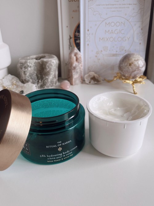 Rent estetisk sett så er jo dette produkter bare *perfeksjon*! den er ganske så stor i størrelsen, litt større enn hva den “trenger” å være, så den stjeler litt plass i baderomshyllen, men det må nesten være litt lov når den tar seg så godt ut! Denne er litt mildere i lukten enn kroppsskrubben i samme serie, til min glede. Den bærer fremdeles et “rituals” preg over seg, men uten å være for kraftig eller “potent”. Man kan kjenne et snev av den igjennom dagen uten at det blir for overveldende. Den føles mykgjørende ut på huden og tørr hud føles umiddelbar fuktet ut etter påføring. Denne er drøy i bruk og litt produkt går en lang vei. For mye produkt gjør den vanskelig å smøre inn, noe som merkes spesielt godt på ikke-nybarberte legger! Den klinger seg litt fast og skaper en hvit hinne hvor jo mer man smører jo mer “såpete” føles det ut. ELSKER at denne er refillbar! Løsningen er genial og superenkel! På lyko sine sider sparer man en knappe 35 kroner på løsningen.. ære til rituals for å prøve å redusere bruken av plast, men hadde likt å sett en litt større margin på besparelsen. #LYKOINFLUTESTER #RITUALS #KARMA1 produkt i posten God, fuktighetsgivende body cream399 visninger - Innlegget ble opprettet 2 årVurdering: 4 av 5Verifierad testare