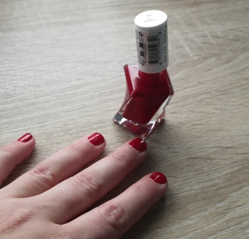 Jeg synes denne neglelakken er utrolig enkel og rask å påføre. Lakken har en perfekt konsistens, flytende nok til at den er lett å fordele, men fortsatt tykk nok til at den er lett å kontrollere. Den fordeler seg i et jevnt lag som herder raskt. Fargen er utrolig vakker - den krever to lag for et fint resultat, men det er ikke noe problem siden den herder så raskt. På neglene mine holder den gjerne opptil 10 dager når det er top coat på. Det er ingen spesiell lukt, noe som gjør den veldig behagelig å påføre.
