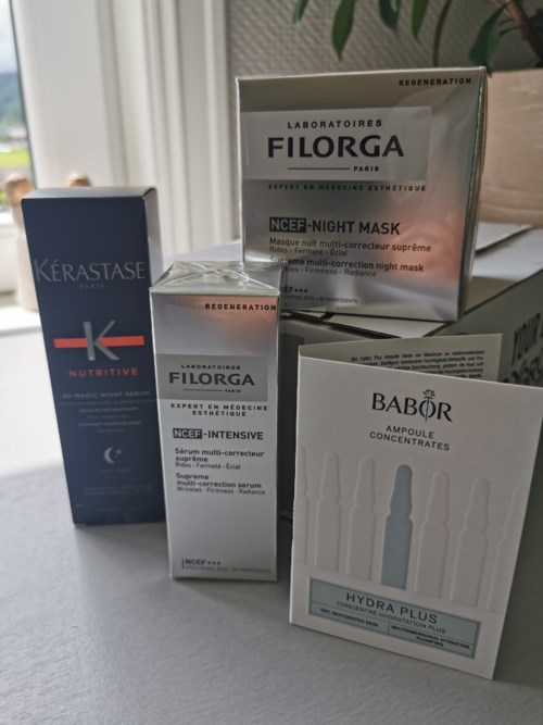 Ble anbefalt denne av frisøren min. Jeg fikk en liten prøve av henne, å den falt virkelig i smak. Både lukt og hvordan den jobbet med håret mitt over natten. Jeg har litt tynt og tørt hår. Blonde striper, så håret mitt trenger mye fukt og pleie. Nå har jeg gleden av å få stor pakke, ser virkelig frem til å se restauranter ved bruk over lengre tid. 🥰 Kan på det sterkeste anbefale denne. Bruker gjerne 2-3 pump om jeg vet jeg skal vaske håret dagen etter. ❤️ #konkurranse1 produkt i posten Vidunder produkt3088 visninger - Innlegget ble opprettet 3 årEt gledelig påfyll av favorittene. 🥰 La alle produktene mine i handlekurven på 5 ulike nettsider. Lyko kom best ut i pris. ❤️ Rask levering var det også. Blir definert flere kjøp her. #filorga #kerastase #moneyback110 visninger