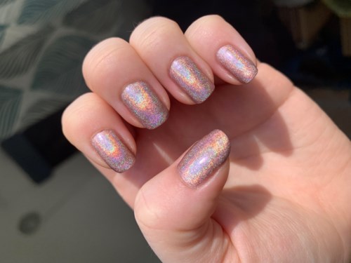 Helt fantastiske, nydelige lineær-holografiske neglelakker (fargene Coral Glam og Ocean Rush), finest i direkte sollys eller spotlys. De er allikevel litt vanskelige å jobbe med. Den er veldig tyntflytende og renner fort i neglebåndene. De trenger minst to til tre lag for at den naturlige neglen ikke skal synes under.1 produkt i posten Nydelige, men vanskelige1637 visninger