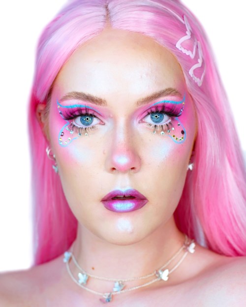 👀• Lastly, vippene; jeg brukte de med diamanter under øynene, dro de av tråden og applikerte én og én, de var litt tunge og vanskelige, men veldig cute!
