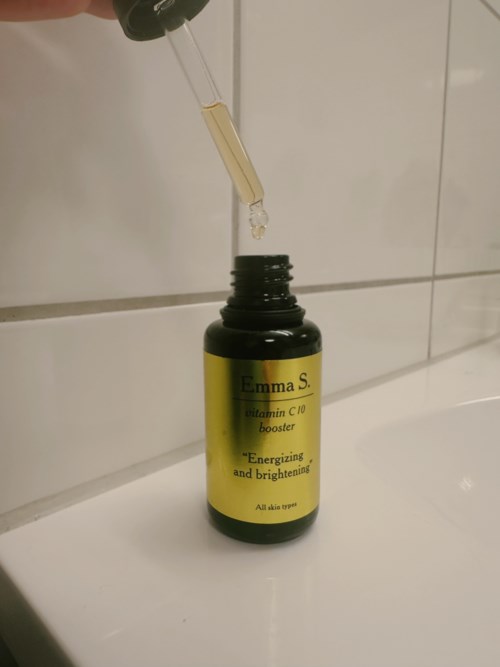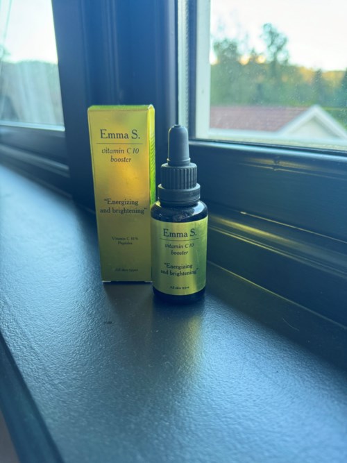 Jeg har fått teste Emma S. Vitamin C 10 Booster. Denne har 10% vitamin c og skal ha en lysnende effekt og gi energi til huden. Den skal også hjelpe mot pigmentflekker. Jeg har testet denne i ca en mnd nå og så langt synes jeg den er helt ok. Formuleringen er lett og trekker raskt inn i huden, flasken har et sofistikert uttrykk og en praktisk pipett så det er lett å administrere. Jeg har nordisk hud, som begynner å bli moden ettersom jeg nettop passerte 34. Huden min er sensitiv og jeg får lett akne og utslett. Det står at man skal bruke serumet morgen og kveld, men ettersom huden min et såpass sensitiv så bruker jeg ingen aktive ingredienser på dagen. Jeg tok på serumet på tørr hud på kvelden etter rens og før ansiktskrem. Jeg bruker retinol ca hver tredje kveld og på disse kveldene hoppet jeg over vitamin c. Siden jeg fort får utslett rundt munnen unngår jeg også alle aktive ingredienser akkurat i området rundt munnen. Jeg har noen pigmentflekker i pannen og på kinnbena under øynene og var spent på om dette produktet kunne dempe disse litt. Jeg tror nok jeg må bruke den en god stund til for å se noen synlig endring på pigmentflekkene, men huden har tålt det bra, og jeg merker at den har fått en liten boost i form av mer spenst og jevnere hud. Alt i alt en helt grei vitamin c.1145 visninger - Innlegget ble opprettet 1 årVurdering: 4 av 5Verifierad testare