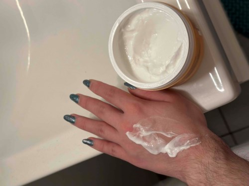 Vanligvis er jeg i mot krukker for hud og hårprodukter, men i denne sammenheng gir det mening. Om du skal dekke hele kroppen med krem så er det greit å få store mengder produkt i hendene samtidig. Ganske enkelt og greit design på krukken. Jeg vil tro denne ikke vil være helt reisesikker, med tanke på lokket på krukken, opplevde ikke søl selv men med måten det lukker på ga meg ikke troen for at den ble å holde seg på. Kremen lukter veldig forsiktig av sitrus. Minner meg litt som sitrondrops, veldig god duft som ikke er for sterk. Duften vedvarer ikke spesielt lenge etter du har påført produktet, i og med at den trekker inn så fort så hadde jeg ingen bekymringer for at dette skulle smitte av på plagg eller andre overflater etter bruk. Jeg har veldig tørr hud på hendene og føttene. Resten av kroppen er ganske normal, blir tidvis tørr. Så for min del var den kjempefin å bruke på kroppen og holdt seg lenge, på hendene og føttene ble den ikke mektig nok. For min del ble denne brukt etter hver dusj, og innimellom på armene og halsen for eksempel. Hele periodene jeg testet disse produktene var det hovedsakelig denne jeg strakk meg etter når jeg trengte fukt, den har mange gode egenskaper og dufter fint. Kort og godt: Fin for litt lett fukt!343 visninger - Brukerens rolle: Lyko Creator.Innlegget ble opprettet 8 månederVurdering: 4 av 5