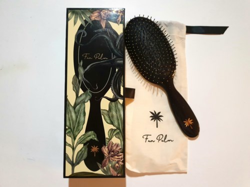 Fan Palms hårbørste har pigger som er fine, faste og myke, som er dekket med gylne myke pigger. Våre fine børster glir jevnt gjennom både vått og tørt hår for å løse opp floker - uten å skape ekstra slitasje. Børstene føles fantastiske og hjelper samtidig til med å stimulere hodebunnen. Den svarte puten fordeler trykket jevnt slik at børsten beveger seg uten motstand gjennom håret.