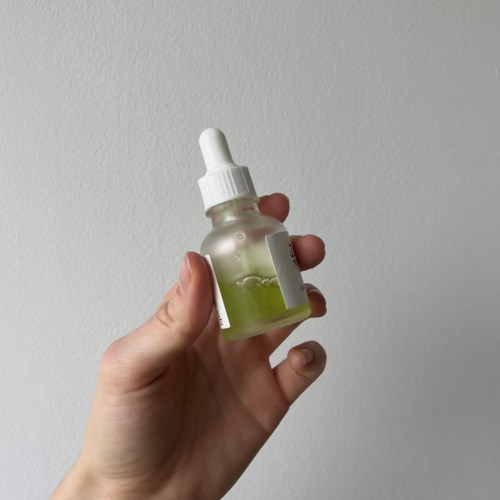 Serumet inneholder 76 % grønn te-ekstrakt og mugwort som tilfører fuktighet og roer ned huden, mens panthenol fungerer som en fuktighetsbarriere for å beskytte huden mot irritasjon.