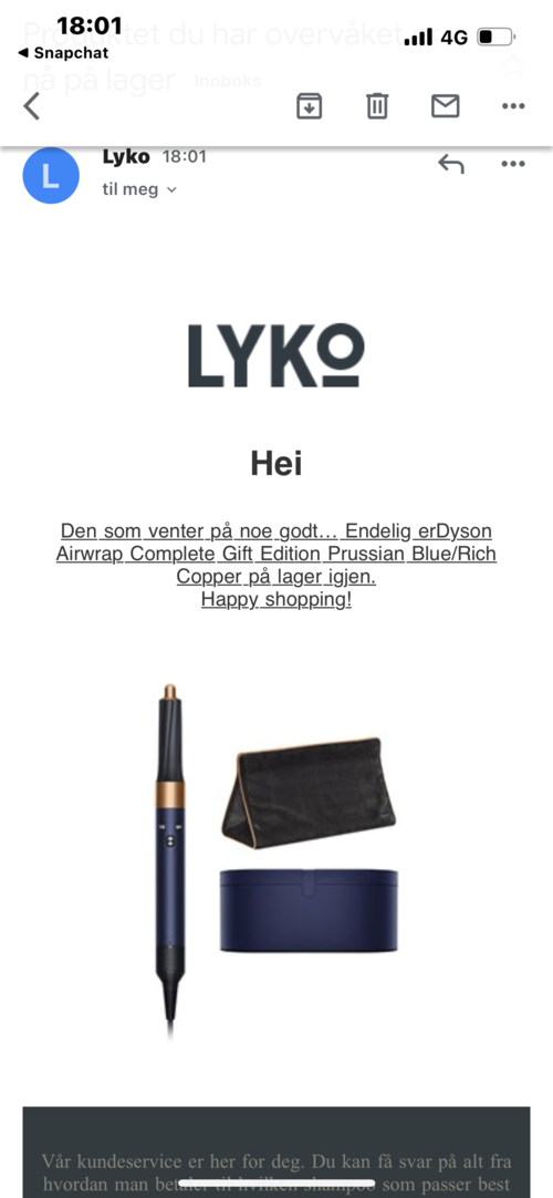 Hei. Fikk en melding om at den kom tilbake på lager 18:01, og da jeg sjekket nettsiden var den utsolgt igjen. Jeg sjekka nettsiden 18:06.. 5 min etter varslingen om på lager igjen. Hvor mange er det dere får på lager for hvert påfyll?364 visninger- Kommentaren lades 3 årHei Hei Magdalena💛 Når vi får påfyll på Dyson er det variert hvor mange vi får hver gang, denne kommer i flere leveringer og det er førstemann til mølla som gjelder her og det er så utrolig mange som venter spent på denne ⭐ Det var leit at du rakk å klikke hjem denne, men ikke gi opp ha på overvåk til neste levering ✨ Ønsker deg en fin dag videre.