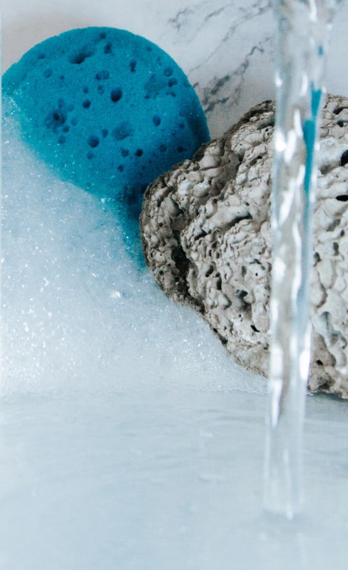 Klassisk badesvamp med perforering for å skape mer skum. Den har en liten snor for oppheng. Finnes i tre forskjellige farger.