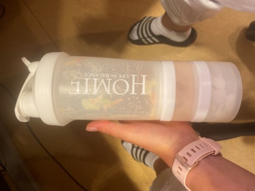 Homie Shaker er en proteinshaker med ekstra forvaring for dagens kosttilskudd, proteinpulver m.m.