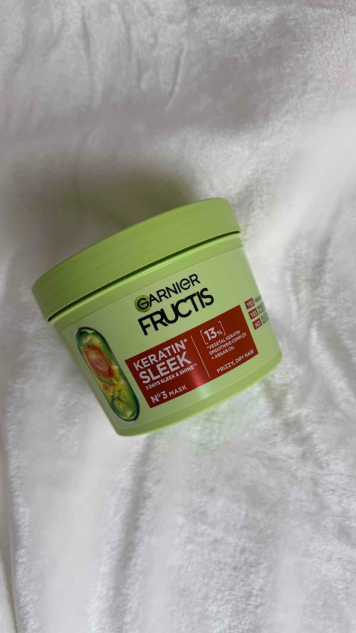 Garnier Fructis Keratin Sleek Hair Mask er en hårkur som passer for deg som har tørt og brusete hår. Formelen gir strålende og langvarig glans samtidig som den umiddelbart glatter ut hårfibrene. Beriket med keratinkompleks* og arganolje for et glatt og blankt resultat som varer i 3 dager**. Fructis Keratin Sleek hårkur er steg 3 i en komplett rutine som gir glatt og glansfullt hår - og resultatet holder i opptil 10 dager og tåler 5 hårvasker****.