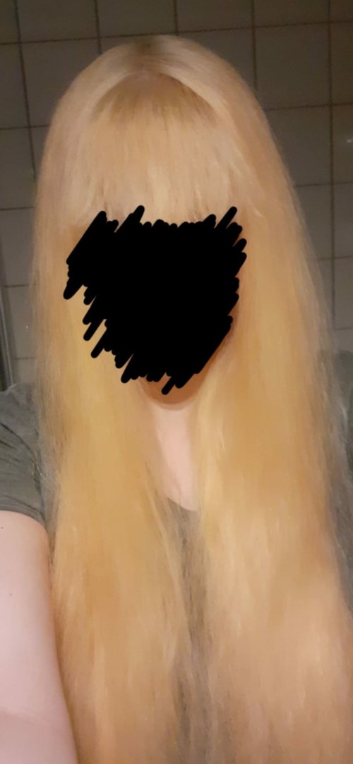 Visste ikke om den ville funke siden håret er så mørkt noen steder og ganske gult. Men som man ser på bildene har det fungert. På bildet med farget hår er det ikke brukt blåsjampo enda, så tror det blir enda bedre etterhvert. Lukter godt og er enkel å påføre. Vil fortsette med denne hvis den holder en stund. - Innlegget ble opprettet 1 måned