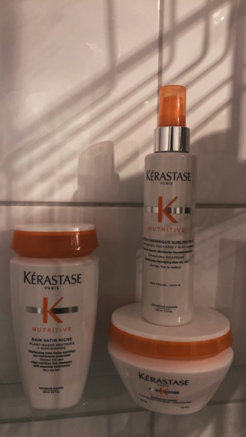 Har testet denne hårmasken sammen med Kérastase Nutritive Bain Riche Shampoo og Kérastase Nutritive Beautifying Detangling Blow Dry Mist i ca. 4 uker. Først litt om min hårtype: - Tykt - Ubehandlet - Litt tørt - Litt frizzy Denne hårmasken lukter ganske godt, bedre enn tilhørende sjampo som hadde en litt maskulin duft. Jeg har brukt masken ca. 1-2 ganger i uken for ikke å tynge håret. Etter vask kjennes håret silkemykt ut, og det er enkelt å gre gjennom. Masken er også drøy i bruk, som er bra mtp. at prisen er litt stiv. Vil si at produktet har en litt upraktisk forpakning (krukke med skrukork), og ville gjerne hatt den i tube eller lignende. Etter ca. 4 ukers bruk vil jeg ikke påstå at håret har blitt spesielt bedre. Det er mykt, men kjennes fortsatt litt tørt ut. Kommer derfor ikke til å kjøpe denne igjen. #KERASTASE #LYKOINFLUTESTER1046 visninger
