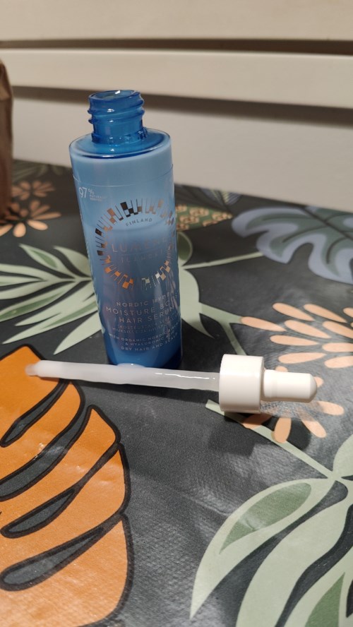 Lumene Lähde fuktighetsgivende hår- og hodebunnserum overrasket meg positivt. Det føles behagelig på hodebunnen og fukter effektivt uten å føles fet. Jeg har veldig tykt og langt hår, og jeg har tidligere bare brukt leave-in produkter på tuppene. Etter å ha brukt dette produktet forblir håret luftig selv om jeg bruker det direkte på hodebunnen. Jeg ble spesielt imponert over emballasjen til Lumene serumet: pipetten er praktisk for dosering av produktet, og den vakre glassflasken føles som en liten luksus i hverdagen. Jeg ville imidlertid ikke ta med meg den skjøre emballasjen på reiser eller til svømmehallen. Duften er frisk og minner om tradisjonell såpe. Den er imidlertid overraskende sterk, og produktet er kanskje derfor ikke ideelt for de med duftfølsomhet eller veldig sensitiv hud.7 visninger - Innlegget ble opprettet 1 dagVurdering: 4 av 5