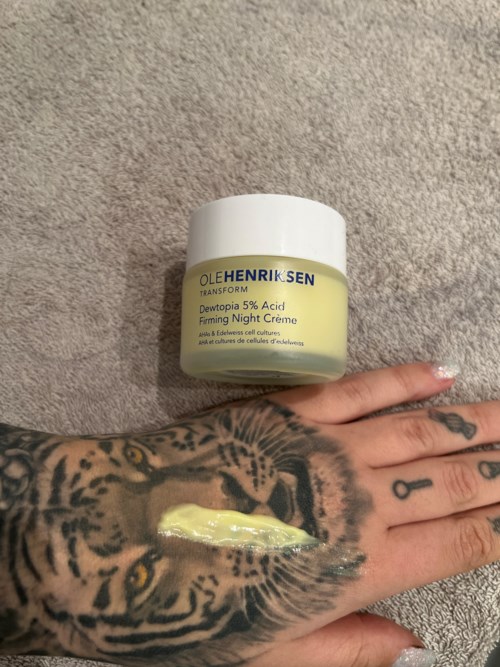 Våkn opp i Dewtopia med fastere, mykere og mer plumpet hud. Ole Henriksen bygger videre på suksessproduktet Dewtopia™ 20% Acid Night Treatment med et nytt hudpleieprodukt som er klar til å forvandle huden din som Askepott over natten - Dewtopia 5% Acid Firming Night Creme, en potent anti-age nattkrem fullpakket med hudutjevnende AHA, oppstrammende rødalger, rynkebekjempende bakuchiol og ultramykgjørende sheasmør.