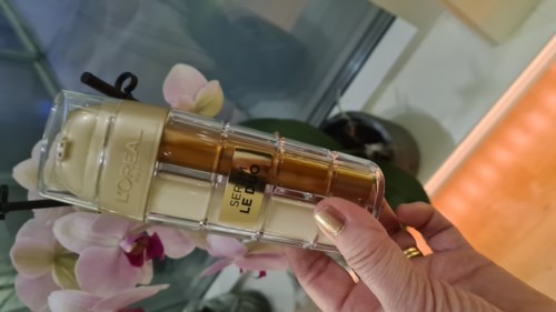 Age Perfect Le Duo Age Defying Serum fra L´Oréal Paris er et anti-age serum som passer til alle hudtyper, også sensitiv hud. L’Oreal Paris har for første gang har brakt sammen effektiviteten til to serum i ett for å redusere aldringstegn. De to formlene er separert i to forskjellige kamre, for å bevare optimal friskhet i hver eneste dråpe. En hvit, nærende fløyelsmyk krem beriket med kraften av kollagenpeptidfraksjoner for å booste hudens fasthet. Og en lett karamellfarget emulsjon som inneholder de essensielle vitaminene C* & B3 for å booste hudens glød og jevne ut hudtonen. Takket være dobbelpumpen får du en ny, fersk blanding av de aktive ingrediensene i en optimal konsentrasjon hver gang du bruker serumet. Resultatet? Reduser hudaldringstegn på bare 7 dager* med effektiviteten av 2 serum i 1.