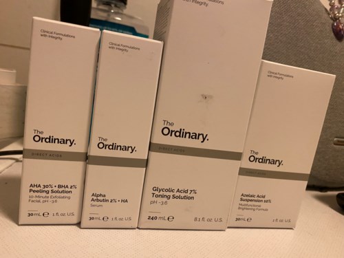 Heihei fine du Selma💗 Jeg ville da lagt det opp sånn her Morgen: -Alpha arbutin 2% -Azealic acid -SPF! Kveld: -Retinol 0.2 -Natural moisturizing factors, da du ikke skal kombinere andre syrer med retinol. En gang i uken kan du bruke AHA + BHA peeling solution, men kvelden du bruker denne, bruk ikke retinol, kun fuktighetskrem. Håper dette var til hjelp, masse lykke til med din nye hudrutine👏🏼 Ønsker deg en nyyydelig dag🥰