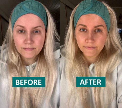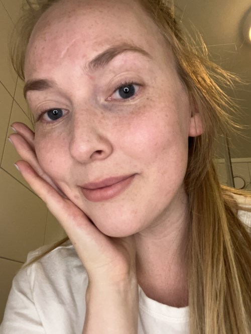 Jeg var så heldig at jeg ble valgt ut til å teste COMIS sitt Intro sett ! 💚 Har aldri brukt selvbruning før, så dette var kjempespennede å få prøve ! 😍 Jeg har kombinert/oljete og noe sensitiv hud. Om høsten/vinteren er huden min ganske lys, med rød/rosa undertone. Jeg skrubbet/renset huden godt både dagen før og samme dag jeg påførte selvbruningen. Det er viktig for å få en jevn farge som sitter lenge og godt 🤝 Jeg ble overrasket over hvor enkel den var å bruke ! Du åpner lokket og sitter i en kapsel, så er det bare å spraye i vei 😍😍 Jeg fikk sprayet 4-5 lag over ansiktet og 2 over hals/bryst før kapselen var tom. Tenker det var i overkant mye i ansiktet, men men 🙈 Så ventet jeg 2 timer før jeg vasket av produktet 🧼 Emballasjen er eksklusiv; det følger med en pose og eske til å oppbevare tingene i. Man får også med pannebånd for å beskytte håret 🙏 Flasken er sølvfarget, elegant, lett og god å bruke. Sprayen er helt fantastisk ⭐️ Lukten er mild og ikke noe jeg reagerer negativt på. Synes den var ganske god i forhold til andre selvbruninger jeg har luktet på før 🌸 Prisen er noe høy, men det er nanomist-enheten du betaler for i dette settet ! Det følger med 4 kapsler som skal holde til 4 ansikts-behandlinger. Og du får kjøpt 4 nye for kun 109kr, det er 27kr per behandling ! Ganske god pris synes jeg 🤩👌 I tillegg til alt dette er formelen vegansk, cruelty-free, uten parabener, glutenfri, ikke-komedogen, sulfatfri og nøtteallergi-fri 💚 Kapslene er laget av resirkulert PP plast og kan også resirkuleres ♻️ Jeg er strålende fornøyd og har ingenting negativt å si ! 💚 Synes fargen ble ganske jevn og fin, både sprengte blodkar og mørke ringer under øynene ble mindre synlig 👍 Følte meg skikkelig fresh etterpå og hadde ingen negative reaksjoner 🤩 (men husk å smøre deg med fuktighetskrem ofte) Det blir garantert kjøpt flere kapsler når jeg er tom ! 💚 Anbefales til alle hudtyper og spesielt til de som ønsker enkel selvbruning uten søl ! 🤩⭐️⭐️⭐️⭐️⭐️ #COMIS #LYKOTESTPILOT (Før- og etterbilder, med 24 timers mellomrom)1 produkt i posten LOVE IT ! 😍1738 visninger - Innlegget ble opprettet 2 årVurdering: 4 av 5