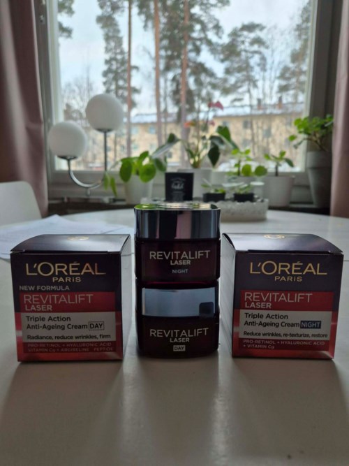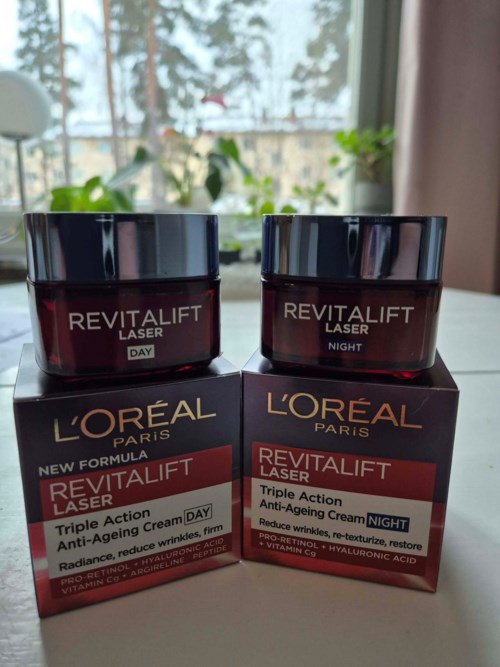 Jeg har brukt Revitalift Laser, både Night og Daycream-varianten, i 4 uker. Kremen er myk, fyldig og har en behagelig duft. Den er lett å påføre og føles bra og litt kjølende. Effekten er fuktighetsgivende, men på en eller annen måte blir sminke litt tung uten dagkremen - jeg droppet foundation etter påføring. Et bra hudpleieprodukt som gjorde jobben sin, men rynker og linjer trengte kanskje litt lengre virketid. Jeg har mine igjen:) Anmeldelsen ble utført på oppdrag av Smartson - testpiloten fikk prøve produktet gratis.5 visninger - Innlegget ble opprettet 1 dagVurdering: 3 av 5