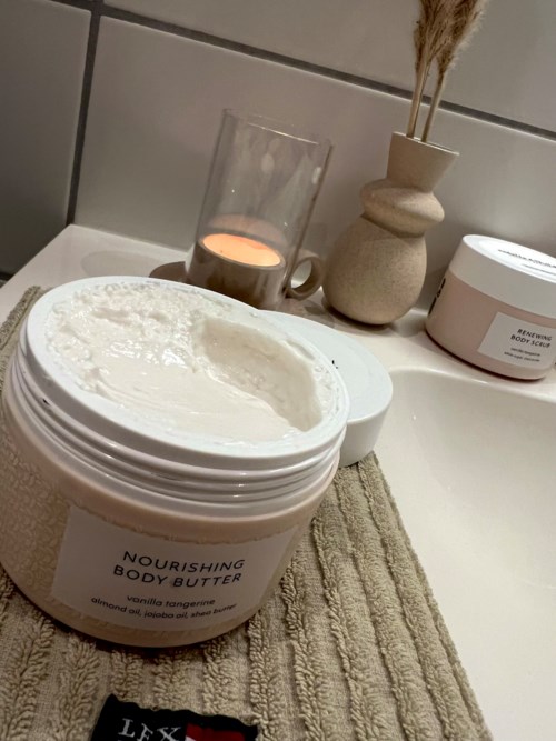 Bodybutteren virker svært fuktende på huden. Den er behagelig, og har akuratt passe tykk konsistens. Jeg pleier å smøre meg på kvelden etter dusj, og før senga, så jeg har ikke testet hvordan den er før man kler seg. Perfekt til vintertørr hud. Duften trekker litt ned for min del. + Inneholder sheasmør, som jeg synes er noe av det mest fuktighetsgivende/økende til tørr hud. + Designet er enkelt og søtt, for de som legger vekt på det. Jeg personlig bryr meg mer om innhold. - Kremen dufter som first price kjeksen med vanilje og sitronkrem. For meg er ikke duften særlig digg, beklageligvis. Men dette går mer på personlig foretrukne dufter, jeg er ikke så fan av vanilje. Den er ikke så framtredende, i alle fall, så jeg kan fint bruke den sammen med min favoritt parfyme uten at denne dominerer. På bildet ser du bodybutteren til venstre, VS lotion i samme serie til høyre. #LYKOINFLUTESTER #ESTELLETHILD3103 visninger - Innlegget ble opprettet 1 årVurdering: 5 av 5Verifierad testare