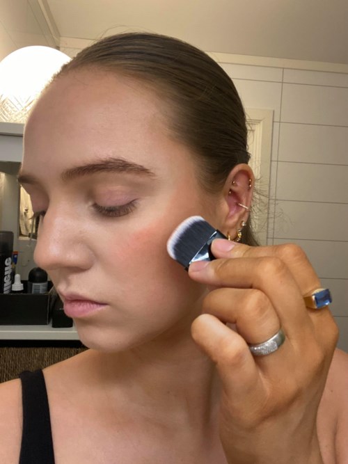 og opp kinnbenet mot tinningene. Smør inn i huden din i sirkulære bevegelser ved hjelp av fingrene eller en børste.