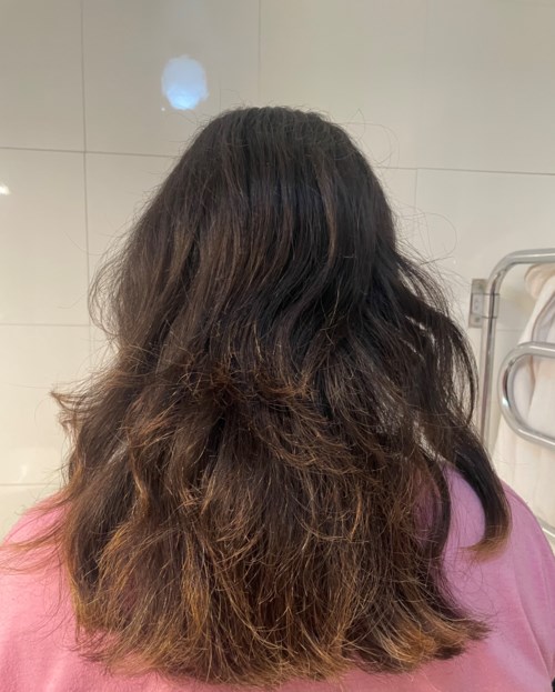 Påfør på håndkletørket hodebunn