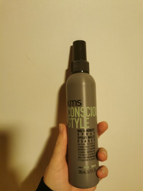 Produktene fra KMS er intuitivt delt inn i START. STYLE. FINISH. CONSCIOUS STYLE Multi-Benefit Spray er både et STYLE-produkt og et FINISH-produkt som har flere ulike bruksområder. Som stylingspray gjør den håret lettere å forme og gir en naturlig tekstur når du tørker håret med en hårføner. Den løfter også dine naturlige krøller og gir et mykt grep. Som finishspray gir den en vektløs, fleksibel hold og gjør frisyren mer holdbar.
