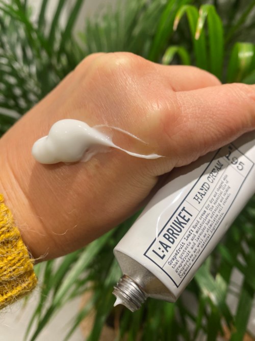 For best resultat, bruk etter å ha vasket hendene med L:a Brukets såpe. Og foryngende håndserum. Påfør en ertestor mengde på baksiden av hånden og masser inn over håndbaken og neglebåndene for maksimal fuktighet. Kan brukes flere ganger daglig. Cosmos sertifisert.