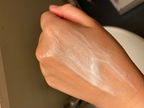 • Gni håndflatene mot hverandre til det skummer, og påfør huden