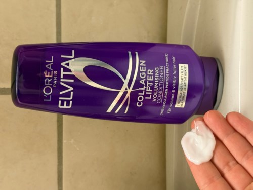 L'Oréal Paris Elvital Collagen Lifter Conditioner er en volumgivende balsam som passer for deg som har flatt og tynt hår. Den innovative formelen er beriket med kollagenpeptidfraksjoner og inneholder også fibre som forbedrer hårets tetthet og øker volumet i 72 timer*. Perfekt for deg som vil ha et glansfullt resultat og mykere hår uten at det føles tungt.