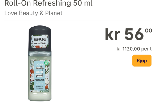 Ikke noe galt med produktet, men som de fleste produkter. Så blir kunder som ikke vet bedre lurt. 56 kr er prisen uten at deoen er på salg på Kolonial. Shame on you Lyko.369 visninger - Innlegget ble opprettet 6 årVurdering: 5 av 5Verifisert kjøper