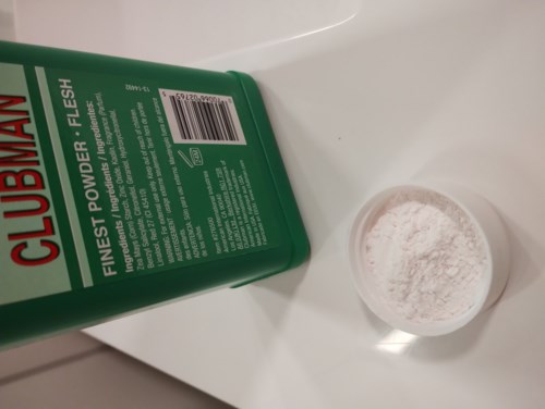 Flesh Talc: Et fint talkum som ikke er hvitt, men smelter inn med alle hudtoner. Med Clubmans orginalduft.